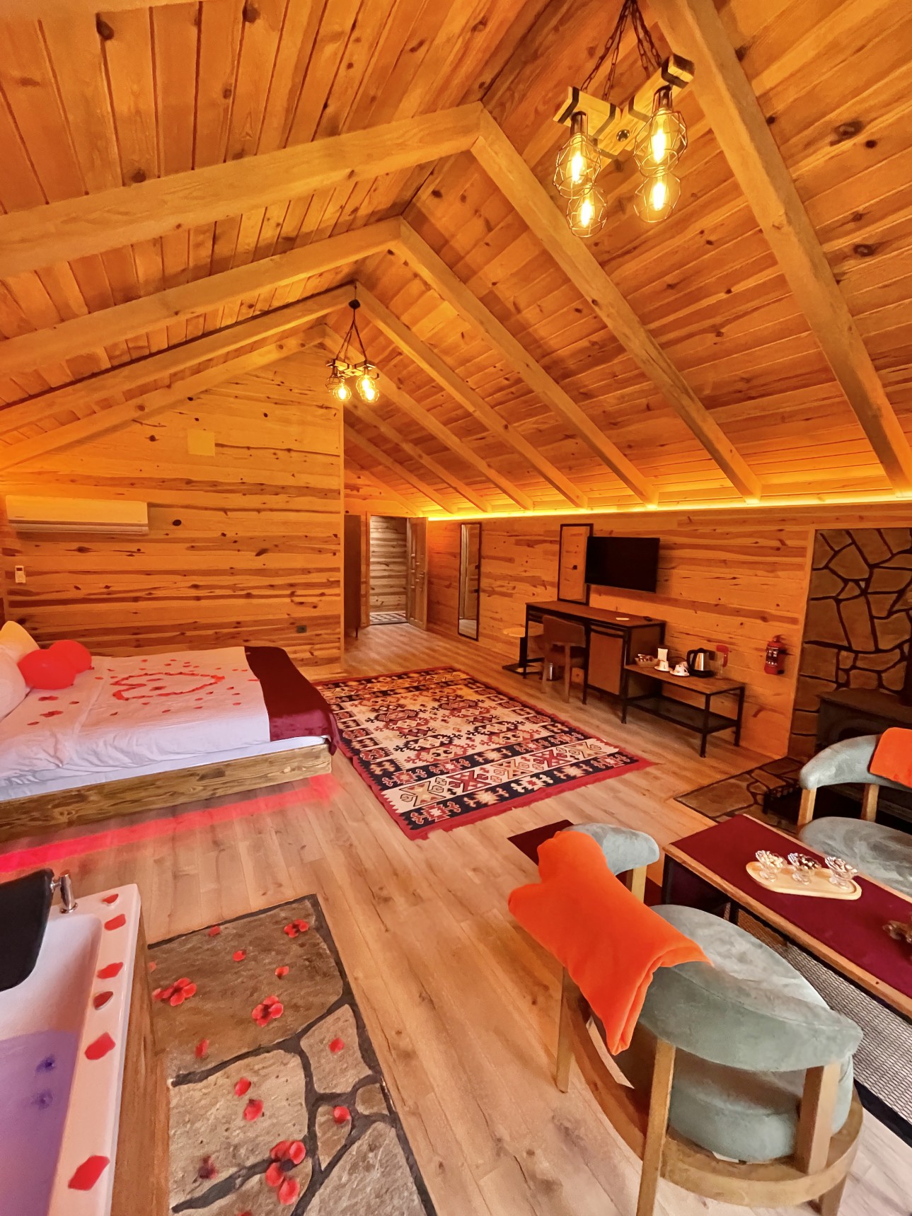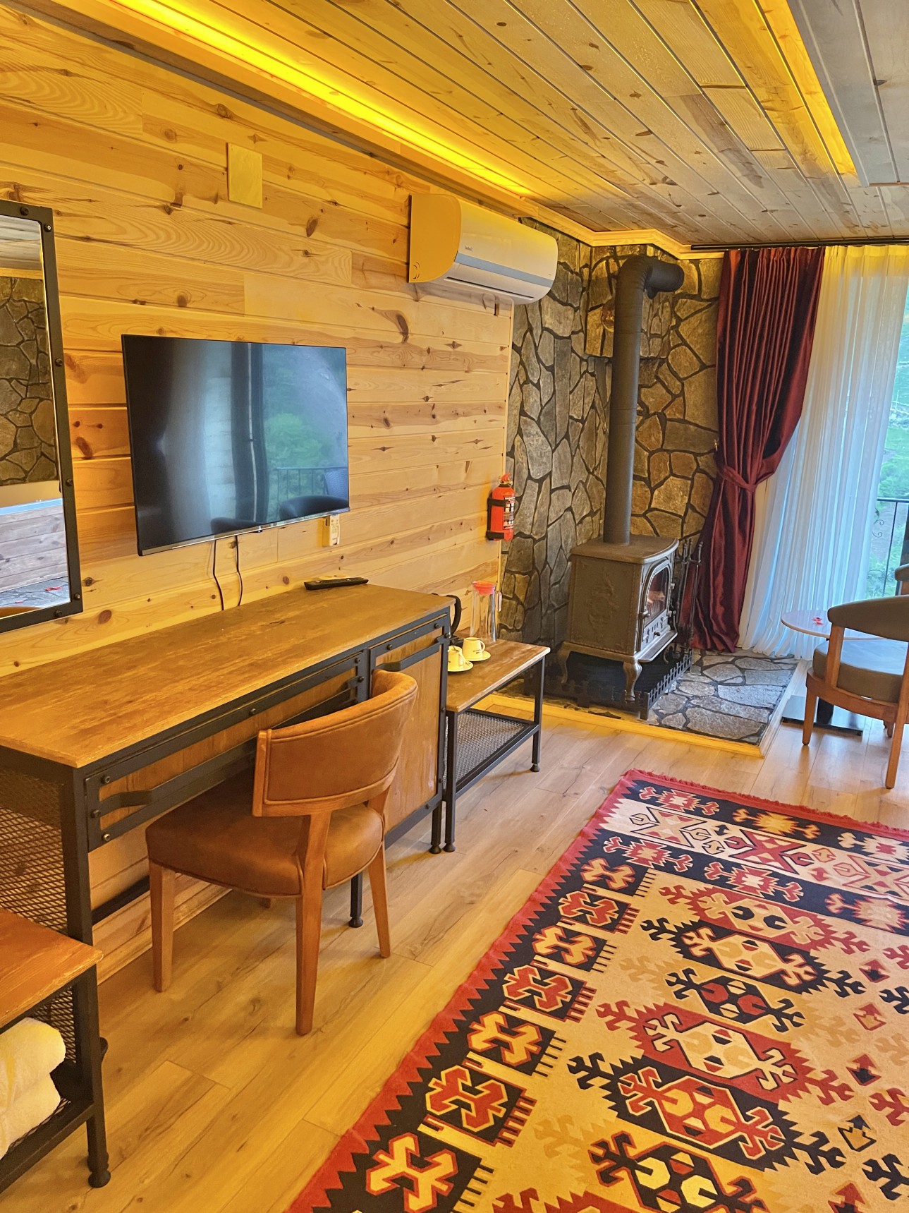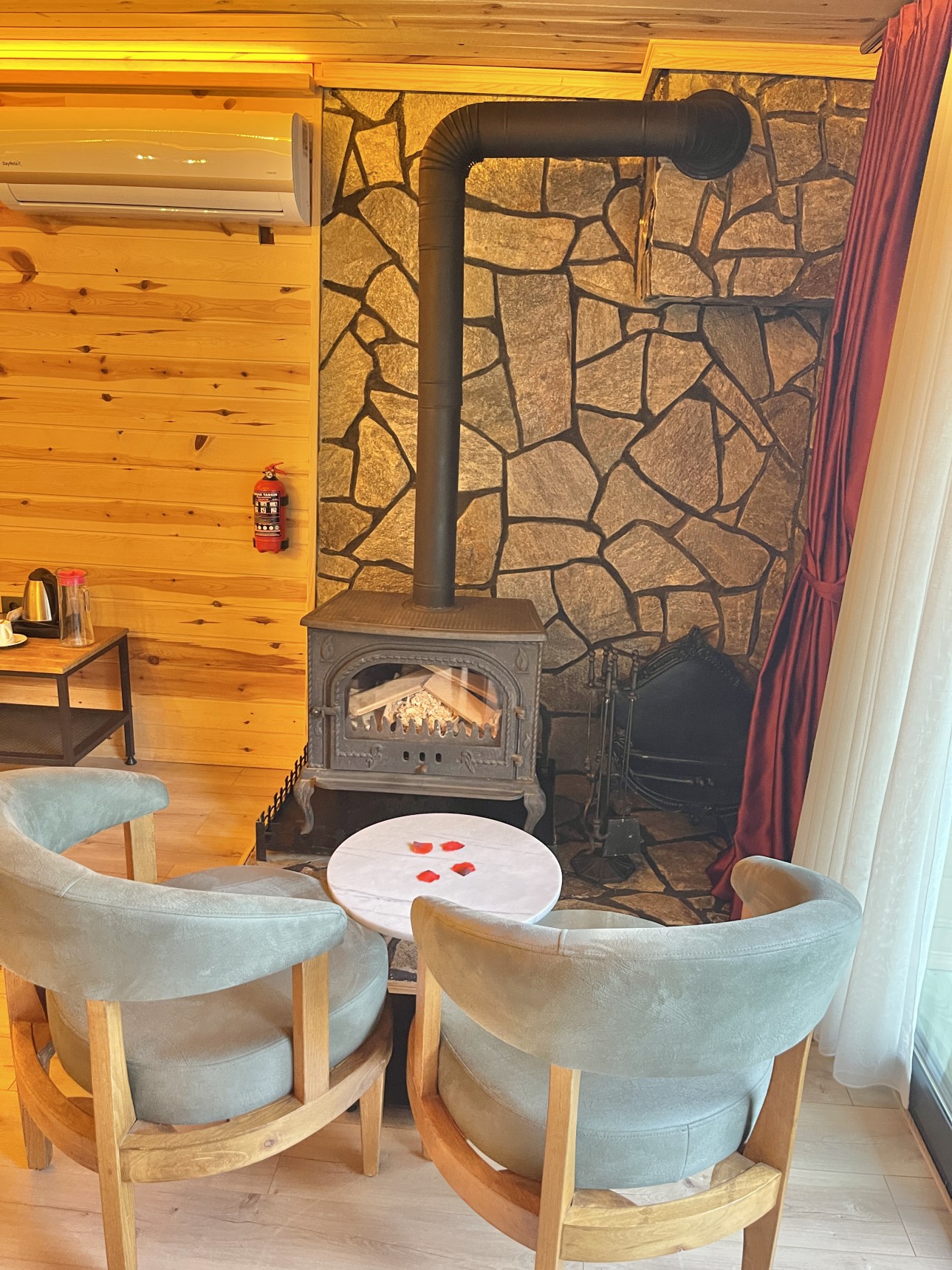 Odalarımız oldukça büyük ve konforludur. Jakuzi ve sobanın yanı sıra klima ve buzdolabı bulunmaktadır.