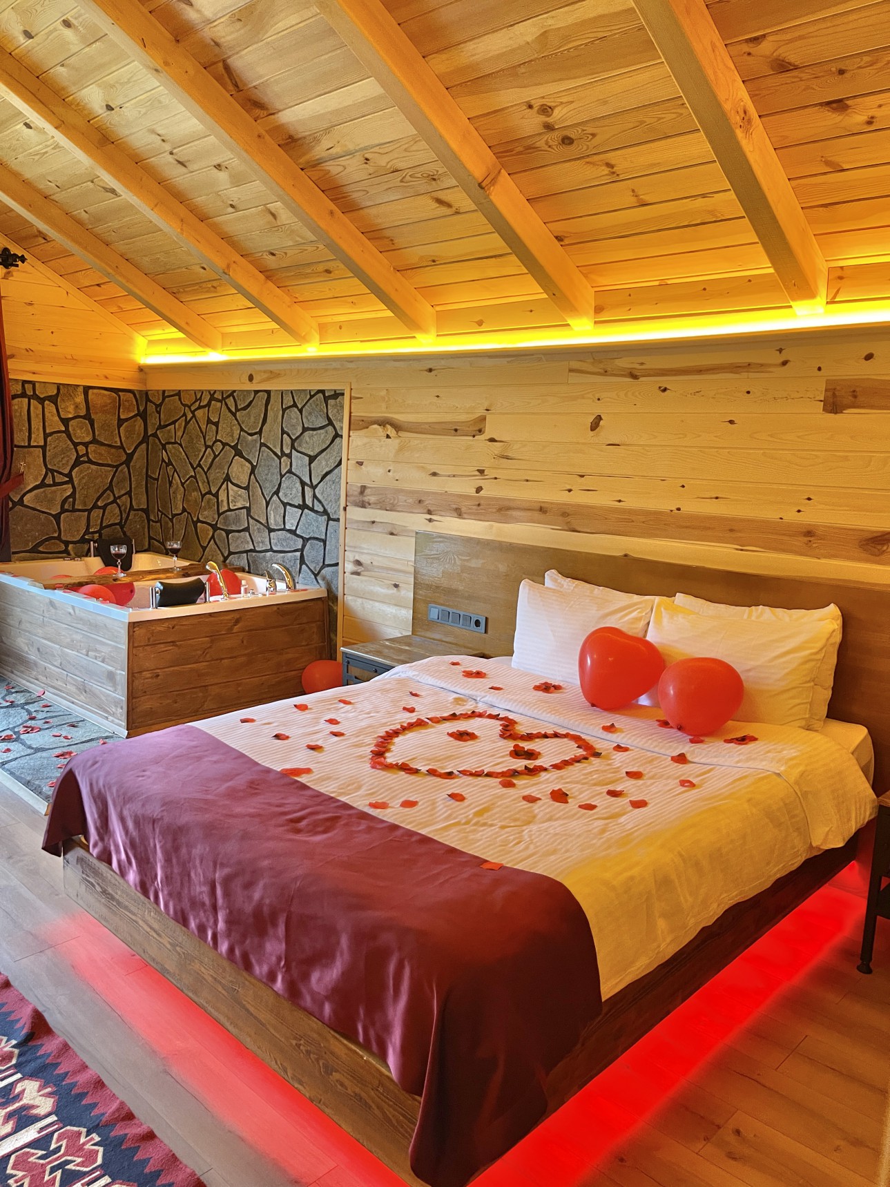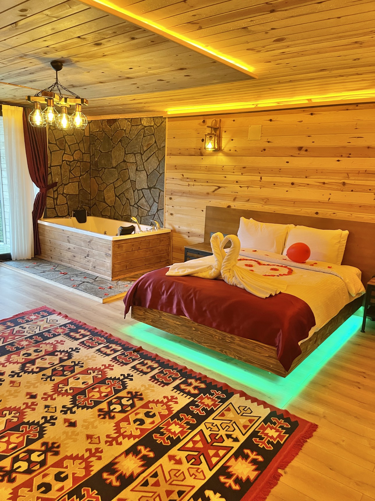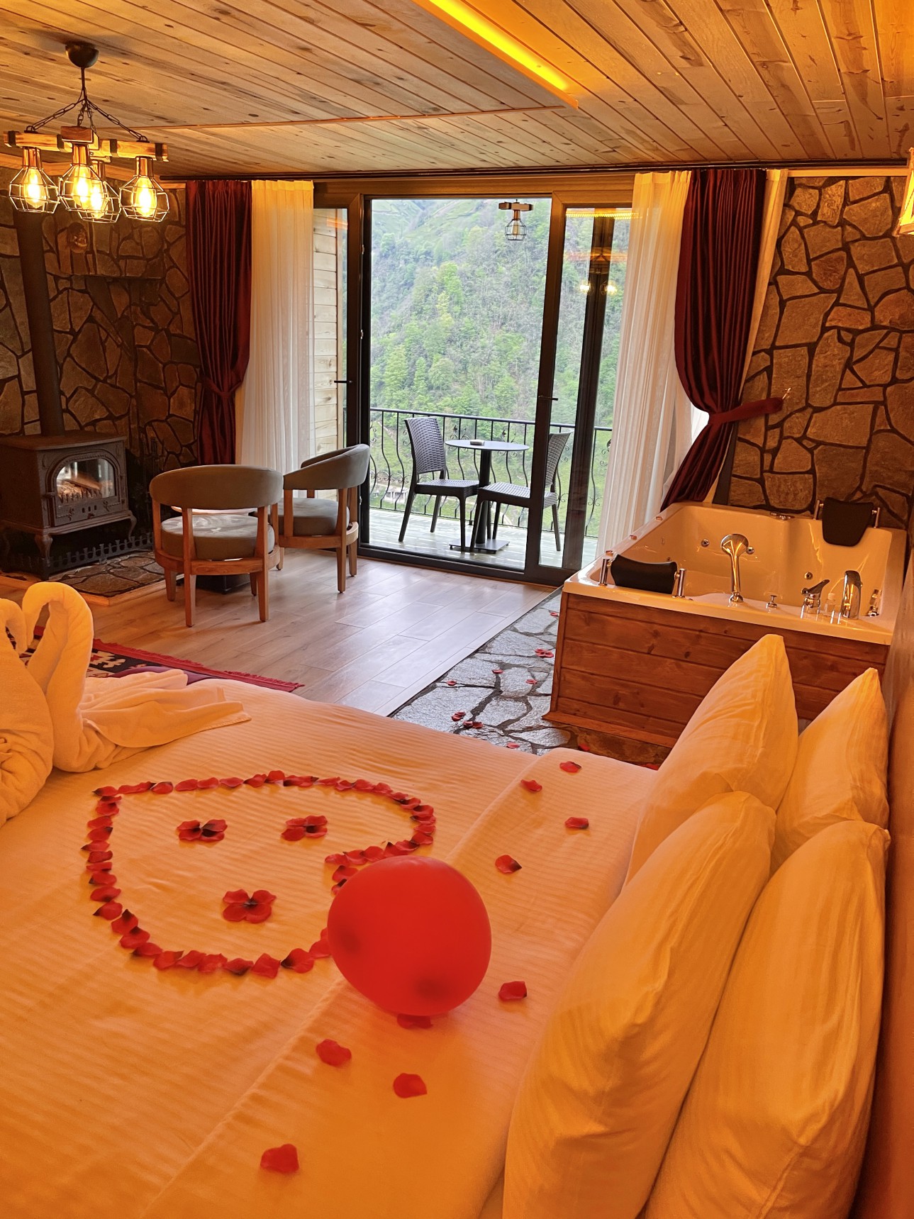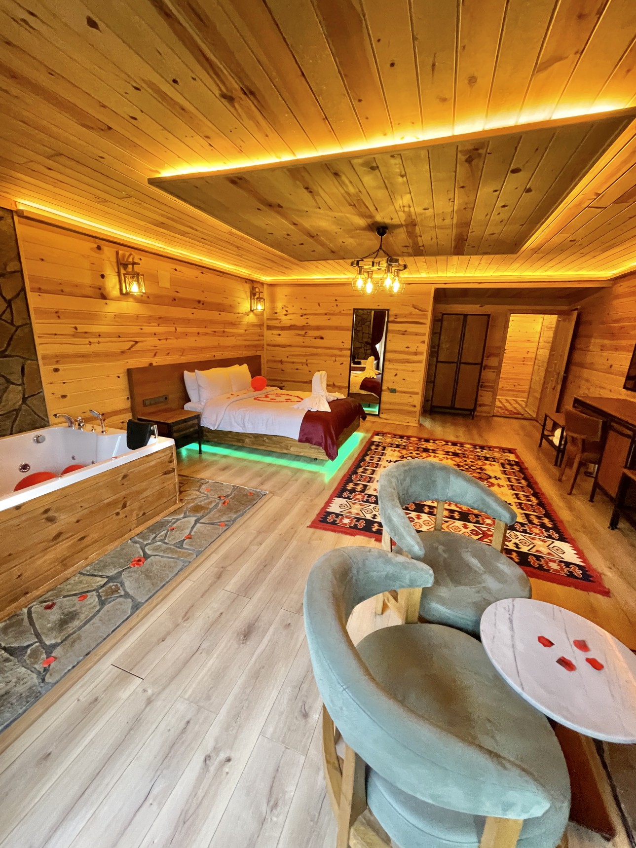 Odalarımız oldukça büyük ve konforludur. Jakuzi ve sobanın yanı sıra klima ve buzdolabı bulunmaktadır.